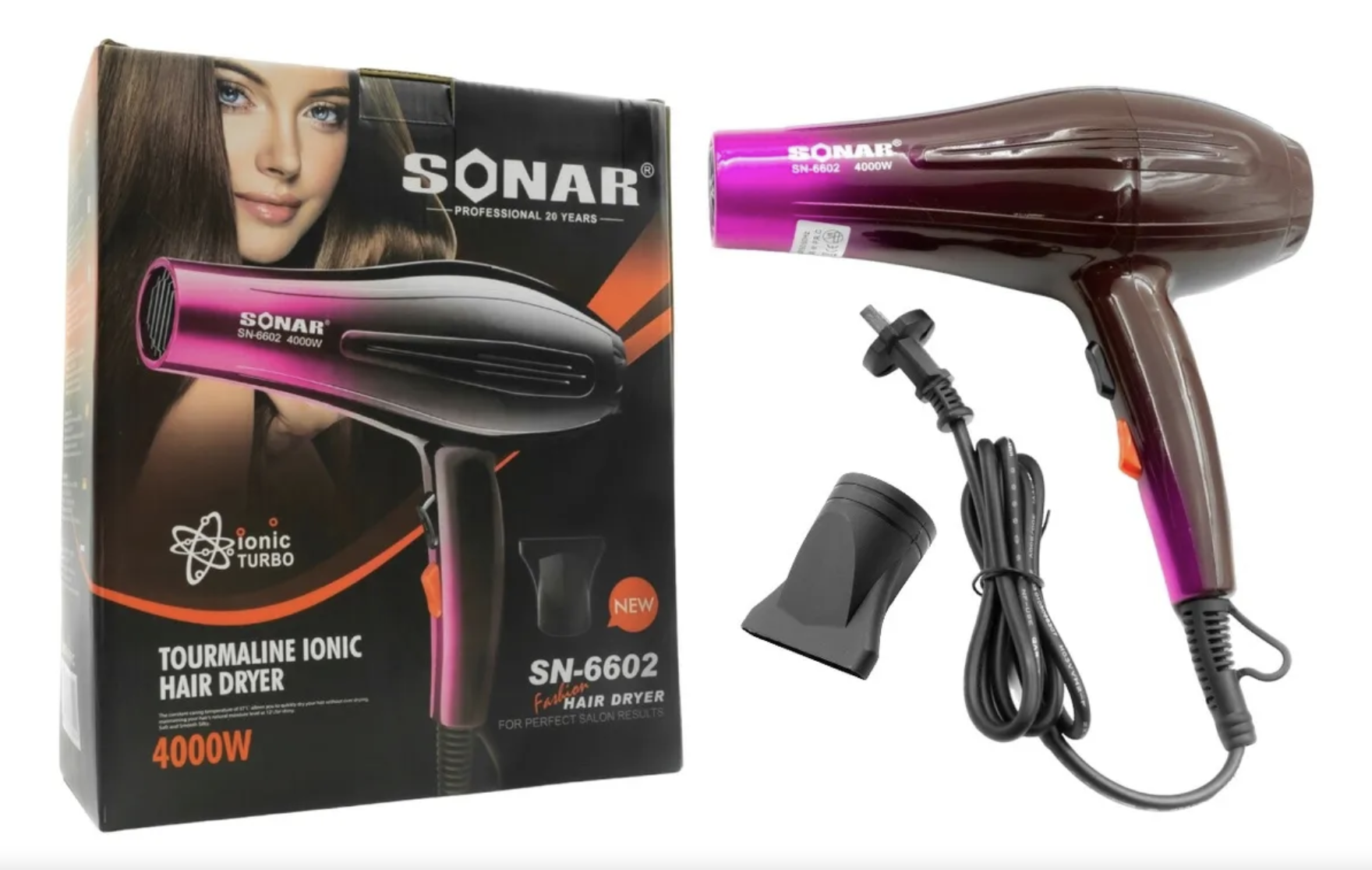 Secador de Cabello Profesional SONAR SN-6602 | 4000W Tourmaline Ionic | 3 Niveles de Calor + Cool Shot