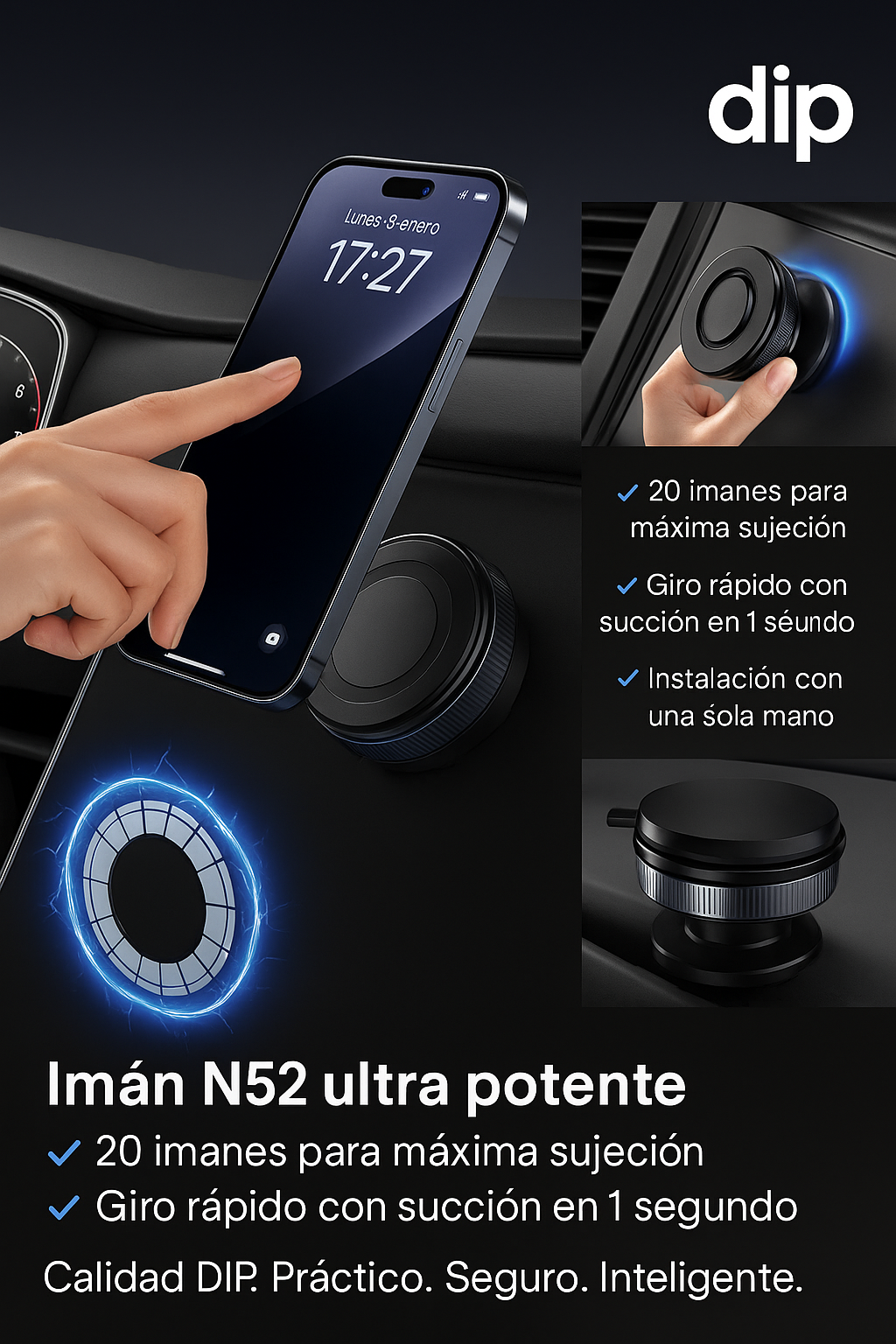 1. Fuerte absorción magnética para un soporte seguro